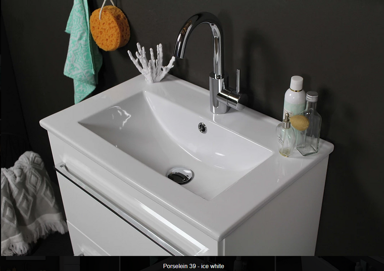 - Mogelijkheden materiaal wastafel: Porselein*, Acryl**.