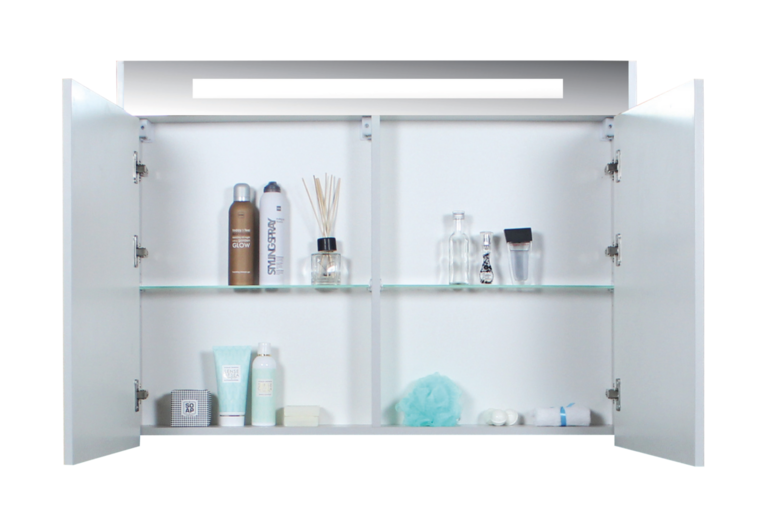 - Premium spiegelkast: spiegelkast in de kleur van het badmeubel met geïntegreerde LED verlichting.*