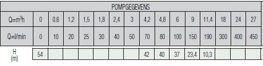 - Capaciteit: 10.800 l/uur bij een opvoerhoogte van 16 meter.