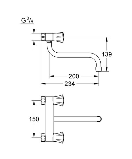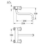- Grohe costa L keuken-wandmengkraan 150mm.