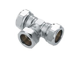 - Messing t-stuk 90° vernikkeld.