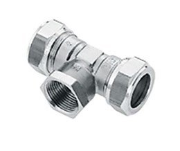 - Messing schroef t-stuk 90° vernikkeld.
