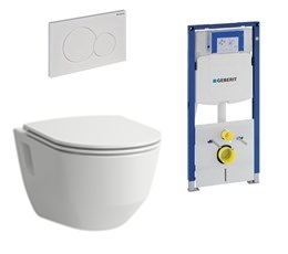 Complete set bestaande uit een combi-pack wandcloset Laufen Pro, Geberit inbouwreservoir en een Geberit bedieningspaneel sigma01.